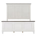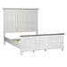Create a classic look with a casual feel using the Allyson Park panel bed. The two-toned wire brushed white finish with charcoal tops creates a cottage style that works anywhere from the beach to the mountains. Crafted with pine solids and veneers with cathedral white oak tops, this piece features a center slat support system, bolt on rails, bead molding, and charcoal grey cap rails.