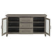 Embrace the bold contemporary styling with this functional Server from the Mila collection. Three drawers give plenty of options for hidden storage while two glass doors give an opportunity to display both your collectibles and style on the two internals shelves. The fashion-forward washed grey finish over hardwood solids and ash veneers looks great and will blend well in any contemporary environment.