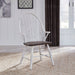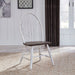 Sit in style and comfort with the Farmhouse Windsor back chair. Crafted of rubberwood solids, this piece features a timeless heavy distressing and nylon chair glides to protect your flooring, a saddle shaped seat for extra comfort, an arched spindle back for support, and is anchored by round turned splayed legs. The two-tone finish with wood tone seat creates a versatile look that is sure to be the perfect addition to any space.
