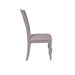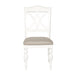 Sit in comfort and style with the Summer House slat back side chair. Crafted of poplar and rubberwood solids, this piece features grey linen upholstery, nylon chair glides to protect your flooring, decorative backs, and is anchored by beautifully round turned legs. This piece is available in an alternate finish, sure to be great addition in any space.