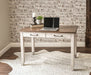 Perfect for your farmhouse-inspired home, the Bear Creek Multi-Function Desk offers just the right mix of casual and rustic-inspired design to blend with today's decorating environments. The two-tone combination of white and honey smoke finish works well with any casual upholstery setting and features distressing that makes the table look like vintage heirlooms in any room. The Multi-Function Desk features two working drawers and can be used in a home office or in a larger room as a Desk and/or Sofa Table.