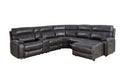 Indulge in the epitome of relaxation with the Provo Dual-Power Reclining Sectional. Customize your comfort with the power headrest and footrest, ensuring optimal relaxation. The RAF Chaise provides a unique lounging experience with its reclining back and built-in footrest. Stay organized and entertained with the console, offering storage, USB charging, and convenient cupholders. The sectional is modular, allowing you to build it to your exact space. Create the perfect configuration that fits your room layout and design preferences. Upgrade your home and treat yourself to luxurious comfort and impeccable style with the Provo Dual-Power Reclining Sectional featuring a chaise at one end.