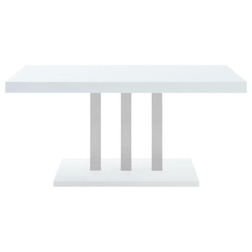 CoasterEssenceSleek lines and smooth materials come together to create this ultra-modern dining table. Designed with a spacious rectangular top in a white high g...